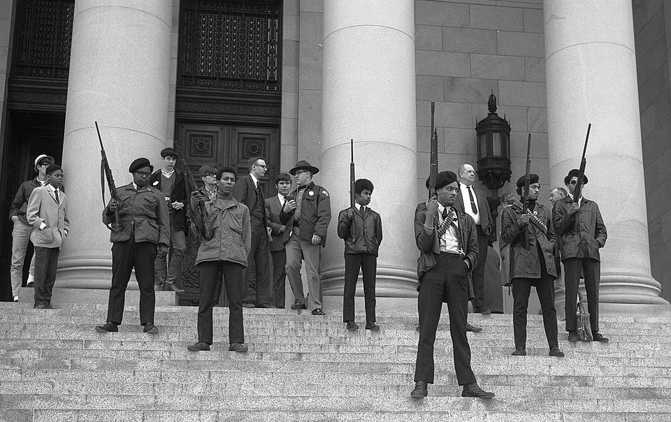 Critically, I also learned about the reaction of then-California Governor Ronald Reagan, who pushed for gun control efforts as a response to armed Black political organizations exercising their constitutional rights. As I came to find, the Second Amendment was hardly an inalienable right in the span of U.S. history. What was framed as a God-given right bestowed upon all citizens was, in practice, a right that was only “inalienable” for a very narrow group.